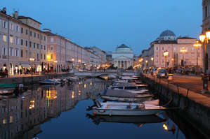 Чтобы увидеть один из символов города, пройдем по улице della Cassa di Risparmio. Это пешеходная улица выведет нас к Большому каналу. Это рукотворный объект, вырытый в 18 веке по приказу Мария-Терезы Австрийской, дочери императора, берет свое начало от моря и доходит до площади Объединения Италии. На этом месте была главная торговая точка города и на лодках по каналу сюда доставлялись грузы. В наши дни по водам канала курсируют прогулочные лодочки, красочные, легкие, привлекательные. В поздний вечер подтверждения этих слов добыть не удалось. Наверное было слишком поздно.