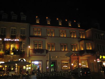 Кроме исторических достопримечательностей город славится своим Мозельским рислингом с тщательно оберегаемыми рецептами его приготовления. Мы были готовы бесконечно долго слушать интересный рассказ Габи, тем более что чувствовалось, что она искренне любит, а, следовательно, и хорошо знает материал про город Трир, но нам надо было еще преодолеть 140 км до ночевки на границе с Францией. Экскурсия закончилась в 22.15. Мы покидали уже опустевший город с закрытыми кафе, погашенным светом и замирающей до завтра жизнью. Это напомнило театр после окончания пьесы: гаснет свет, опустился занавес, все спешат домой...