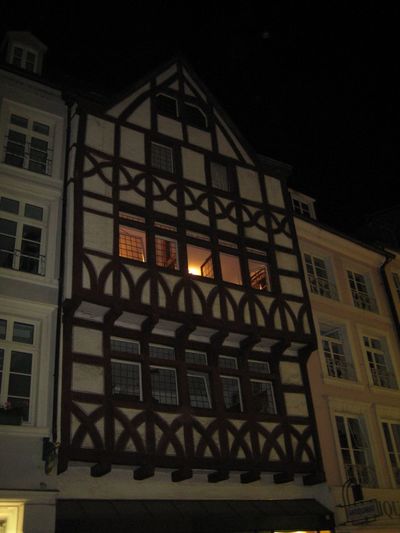 Балкончики домов увиты цветами, в воздухе витают божественные ароматы вкусной и здоровой немецкой кухни. Группы туристов гуляют по улицам, слушая своих экскурсоводов. Мы подошли к самому старинному каменному сооружению в Германии. Его архитектурный стиль — переходный от позднего Ренессанса к ранней готике. Это — дом-крепость с толстыми стенами и высоко расположенными окнами, чтобы лучше защищаться от врага.