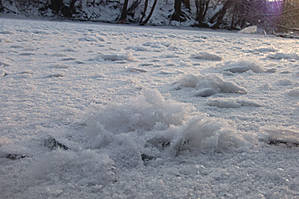 Мой друг дрожал от холода Пройдя диким полем, мы спустились к реке. Морозы третий день стояли за 30, но я все же проверил лед на толщину и прочность, запустив лапу в полынью. Мы любим смотреть на реку и костер. — с тех пор , как выкинул телевизор на помойку, я часто бываю здесь. Особенно нравится смотреть, как крепкий мороз сковывает льдом мою реку, а серебристый иней рисует на поверхности льда сложные узоры, которые каждый раз новые и никогда не повторяются.