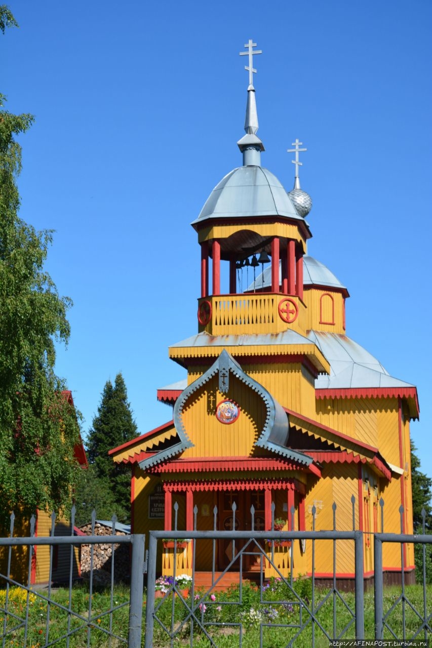 Первоначальная церковь Троицы Живоначальной располагалась на высоком берегу реки Печоры на месте Дома культуры до 1934 года. Её видели издалека, и перезвон колоколов слышали за несколько километров в округе. Звонили каждый час и по удару колоколов люди узнавали время. Церковь была закрыта в 1930 году, разобрана в 1934. На месте церкви в 1959 году построено здание районного Дома Культуры.