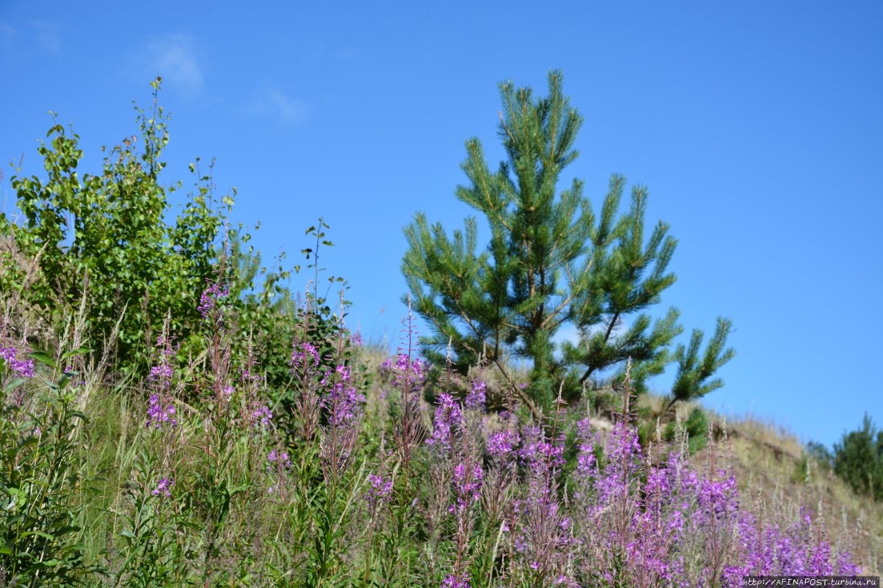 Капитан прокатил нас с ветерком и встал на якорь у крутого берега поросшего ярким иван-чаем, с узкой тропой вверх. Нас ждала небольшая прогулка в деревню Шерляга.