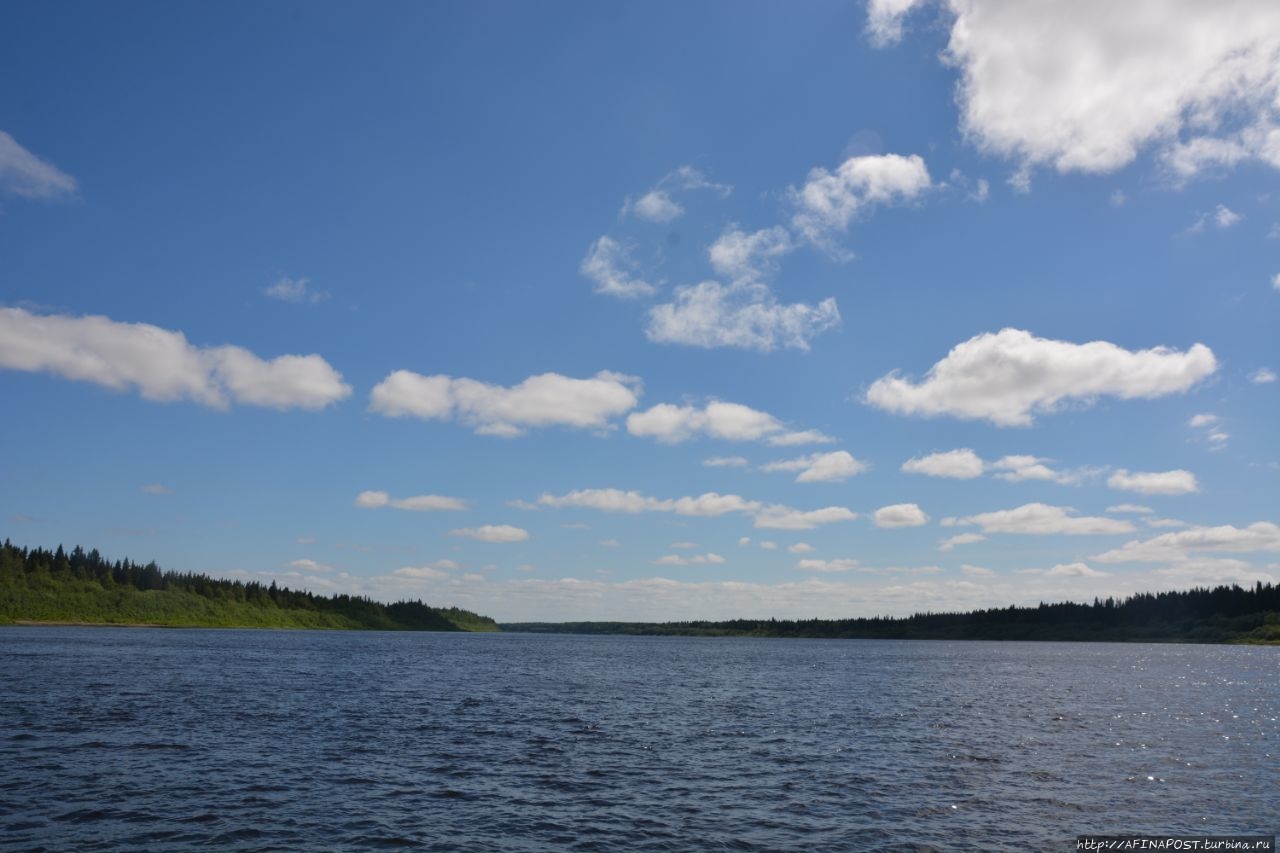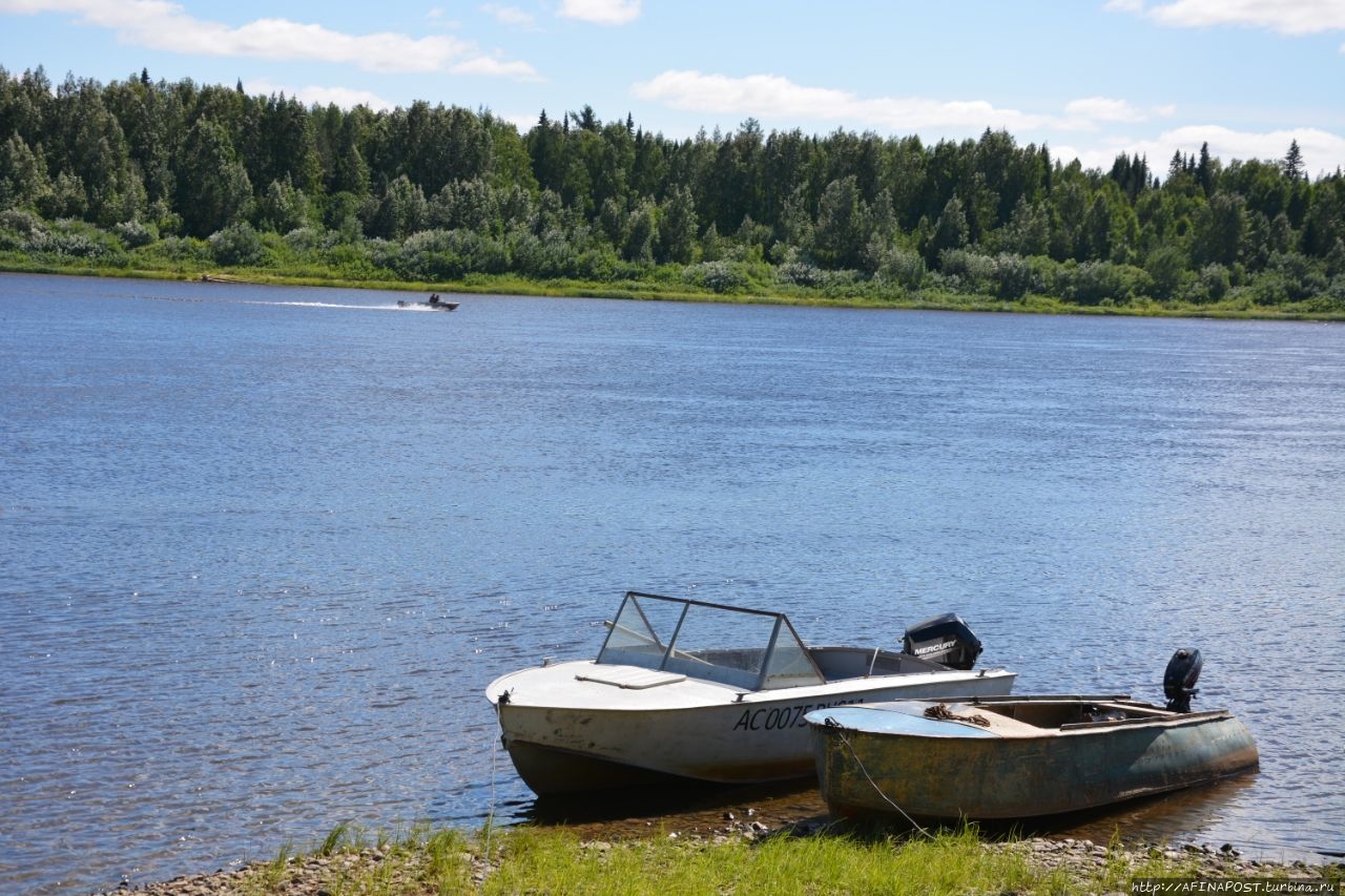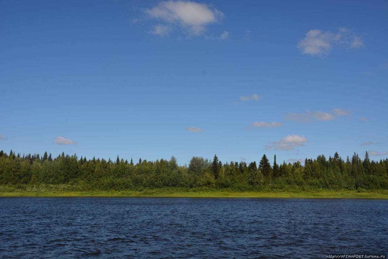 Девственные леса Коми. Печора здесь хозяйка!У пристани Троицко-Печорска, на песчаном берегу лежат лодки местных жителей, над речной косой и мелководьем с криками кружатся белоснежные чайки, тихая волна бьётся у ног.