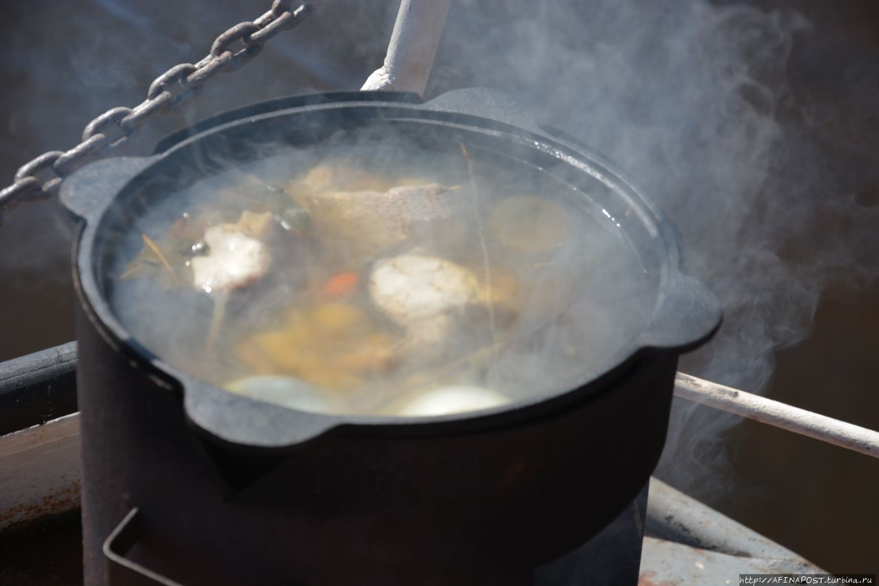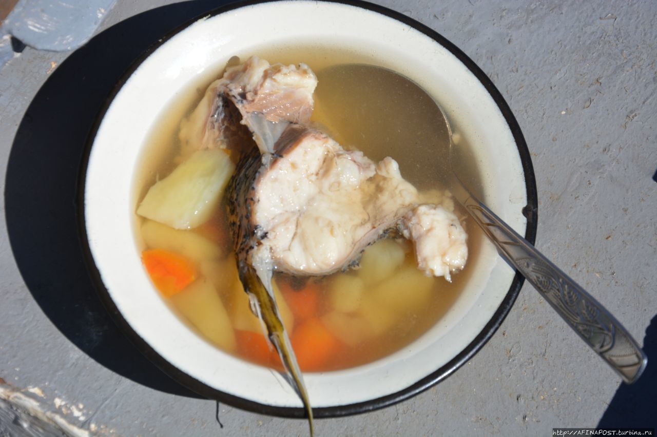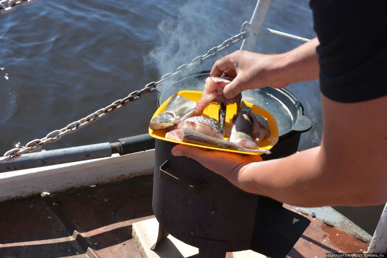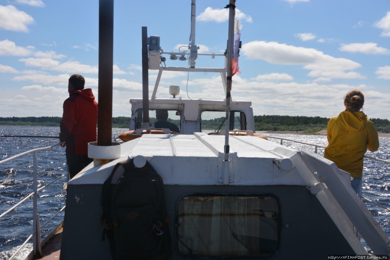 Пока мы будем гулять, капитан сварит на обед рыбацкую уху из печорской рыбки. Дед-рыбак уже поджидал нас в своей лодке.