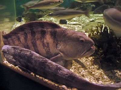 Здесь есть и тропические рыбы, но внимание привлекают представители северных морей: рыбы...