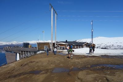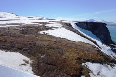 Она напомнила нам о смотровой площадке в Бергене – аналогичный дощатый настил и стеклянное ограждение. Только короче, не нависая над фьордом. И инфраструктура в наличии. Здесь есть кафе, перекусить можно как внутри помещения, так и на открытой площадке, там стоят столики со скамейками. В ассортименте сэндвичи и снеки, кофе-чай, прочие напитки в баночках и бутылочках, как газированные, так и не очень. Поплотнее покушать можно в ресторанчике, внешне напоминающем советскую столовую. Конечно, здесь гораздо чище, совсем другой ассортимент блюд, но столики на четверых, очередь на раздачу и подносы вызвали у меня такие ассоциации.