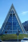 На берегу материковой части города у съезда с моста в 1965 году возвели Арктический собор. Tromsdalen kyrkje или Ishavskatedralen – его официальные названия. На самом деле он является приходской церковью местных лютеран, но благодаря уникальному внешнему виду известен всему миру именно как Арктический собор. Не зря говорят, что все гениальное просто. Вот и два сливающихся алюминиевых треугольников высотой в 35 метров производят впечатление. По задумке архитекторов, церковь должна была быть похожа на айсберг, и задумка удалась. Еще раз посмотрев на него с высоты, мы с сожалением приняли коллегиальное решение, что в этот раз в него заходить не будем. Поэтому лишь литературные источники расскажут нам о люстре из чешского хрусталя, напоминающей ледяную скульптуру из сосулек, кристаллов льда и ледяных нитей, а также витраже в алтарной части. Его создали спустя 7 лет после строительства церкви, изобразив руку Бога, от которой исходят три луча света: на фигуру Христа и двух людей рядом с ним. А еще в этой церкви есть орган, он тут появился еще позже, уже в двухтысячных годах. Теперь в здании церкви часто проводятся концерты органной музыки, которыми могут насладиться все 720 человек, помещающихся в ней.