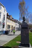 Сейчас же наша группа гуськом марширует на мостик, отделяющий, как я определила для себя, портовую часть города от жилой, центральной. А асфальтовая покрытие оставляет желать лучшего, как видите. И давайте сразу обратим внимание на люки. Не так художественно, как в Бергене, но тоже примечательно, согласитесь.