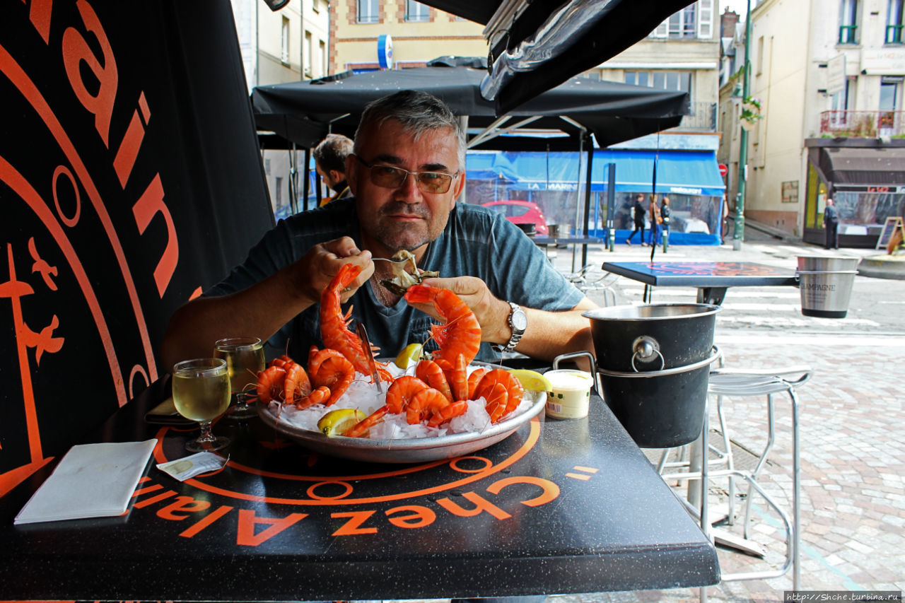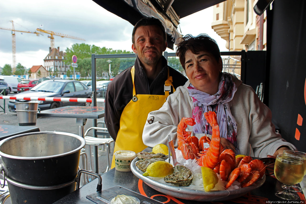 Цены, указанные на прилавках, действуют "на вынос". Многие отдыхающие в Трувиле предпочитают прикупить пакет готовых продуктов и употребить у себя в номере отеля на балконе.