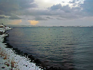 Возвращались в аеропорт мы само сабой на знакомой електричке вдоль знакомых берегов знакомых фьердов. Но я, ожидая новых впечатлений и разительных перемен за окном, сразу сел на левую сторону и приготовил камеру. Теперь на свежем контрасте мы можем посмотреть, как преобразился берег фьерда после небольшой метели.