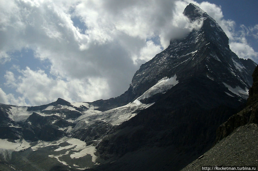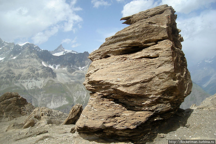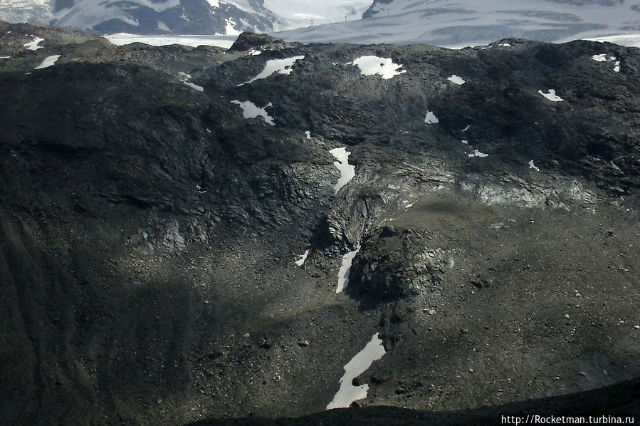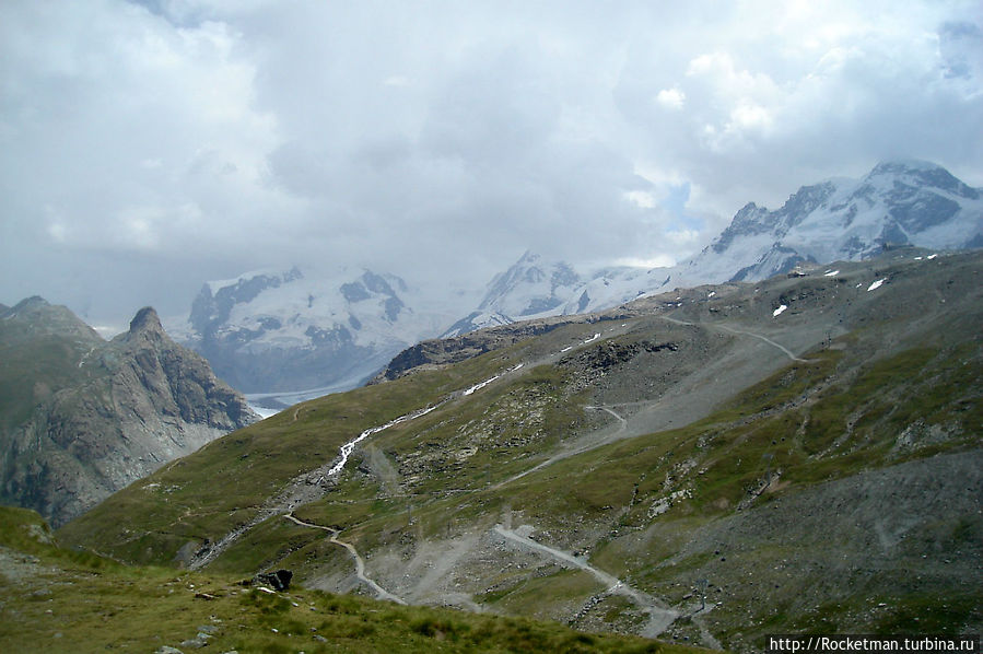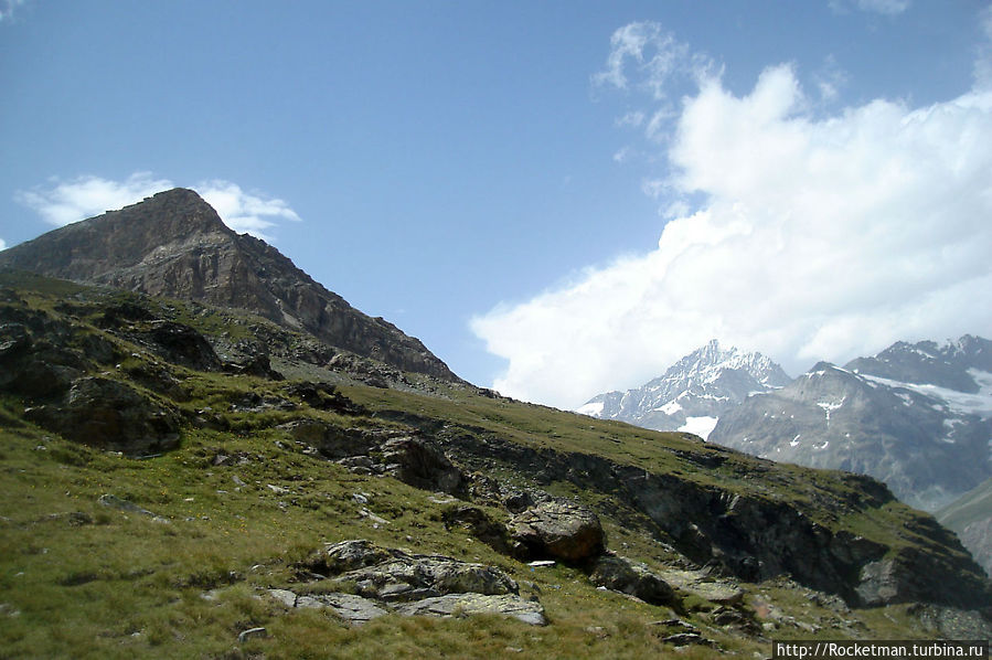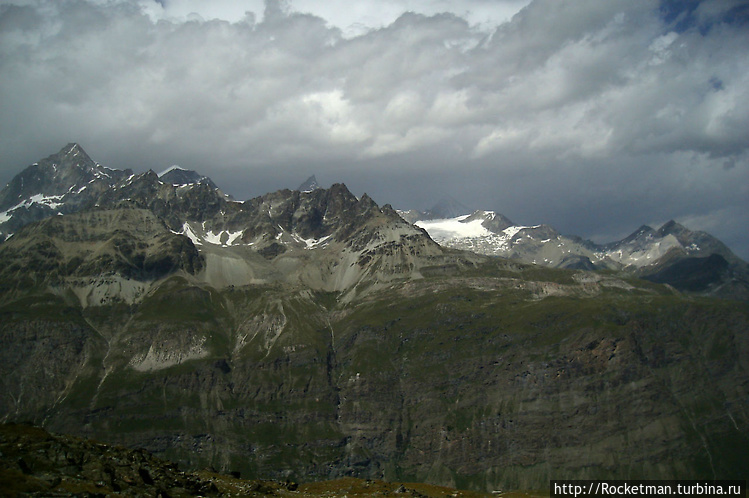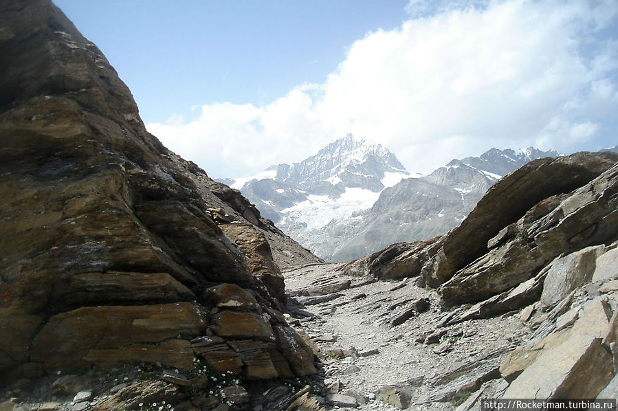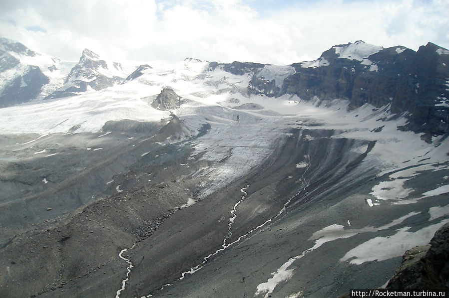Задача была совершенно конкретная, и отступать от нее я не мог. Начался подъем к гребню Хернли. Навстречу мне спускалось достаточное большое количество туристов и альпинистов, совершивших восхождение на Маттерхорн. Все спешили успеть на подъемник, чтобы спуститься в Церматт. Один я ломился в другую сторону – наверх! Т.к. я был налегке, естественно подъем был на скорость. Я только успевал останавливаться, чтобы запечатлеть в памяти фотоаппарата и своего мозга то, что я видел перед собой.