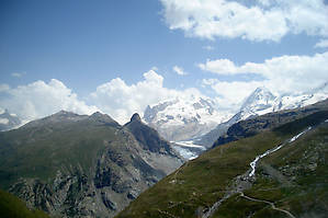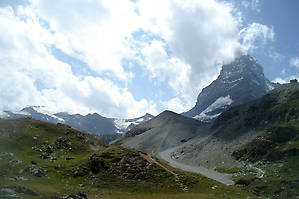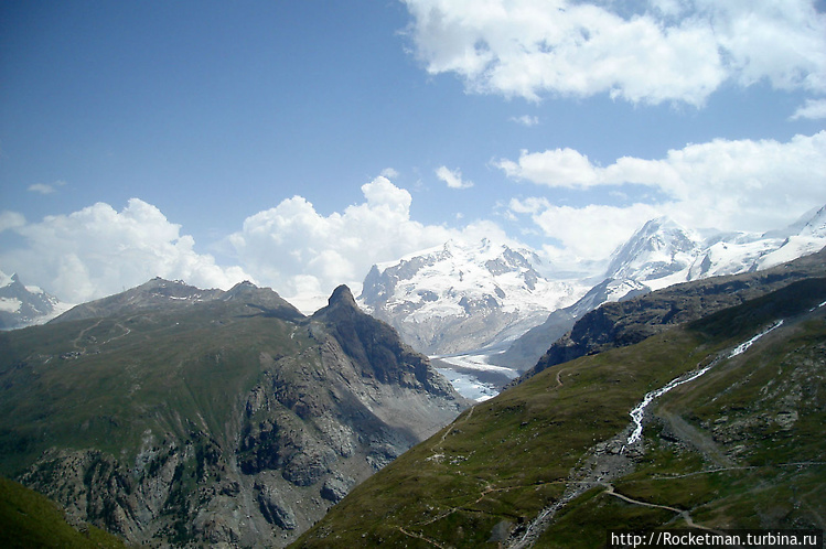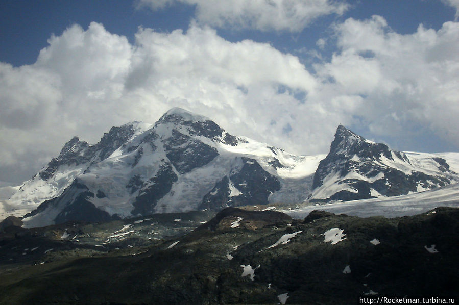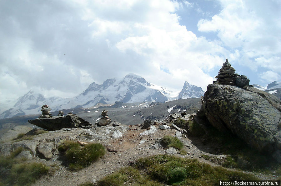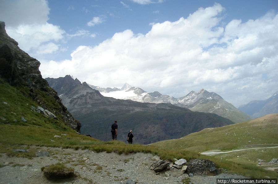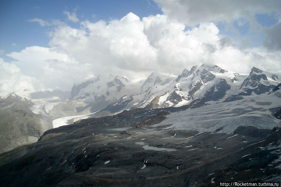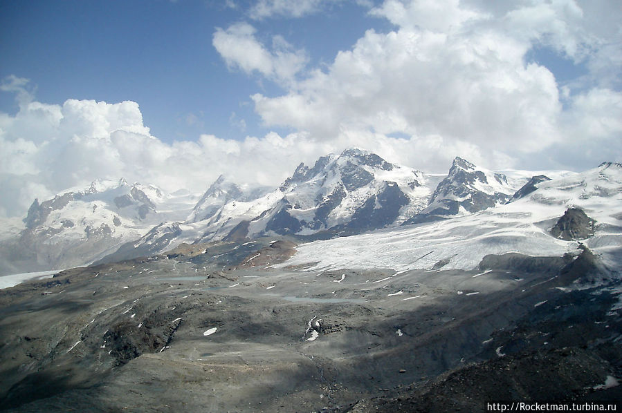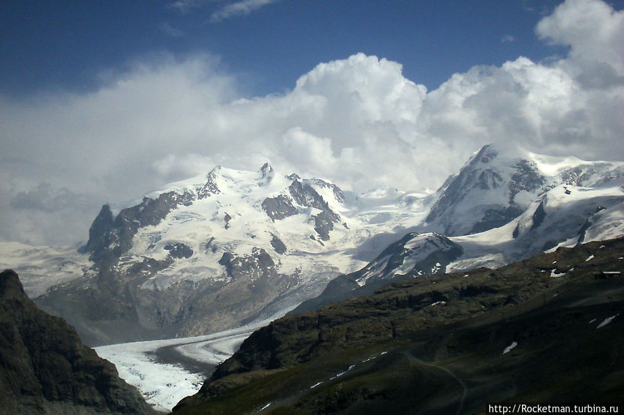 Задача была совершенно конкретная, и отступать от нее я не мог. Начался подъем к гребню Хернли. Навстречу мне спускалось достаточное большое количество туристов и альпинистов, совершивших восхождение на Маттерхорн. Все спешили успеть на подъемник, чтобы спуститься в Церматт. Один я ломился в другую сторону – наверх! Т.к. я был налегке, естественно подъем был на скорость. Я только успевал останавливаться, чтобы запечатлеть в памяти фотоаппарата и своего мозга то, что я видел перед собой.