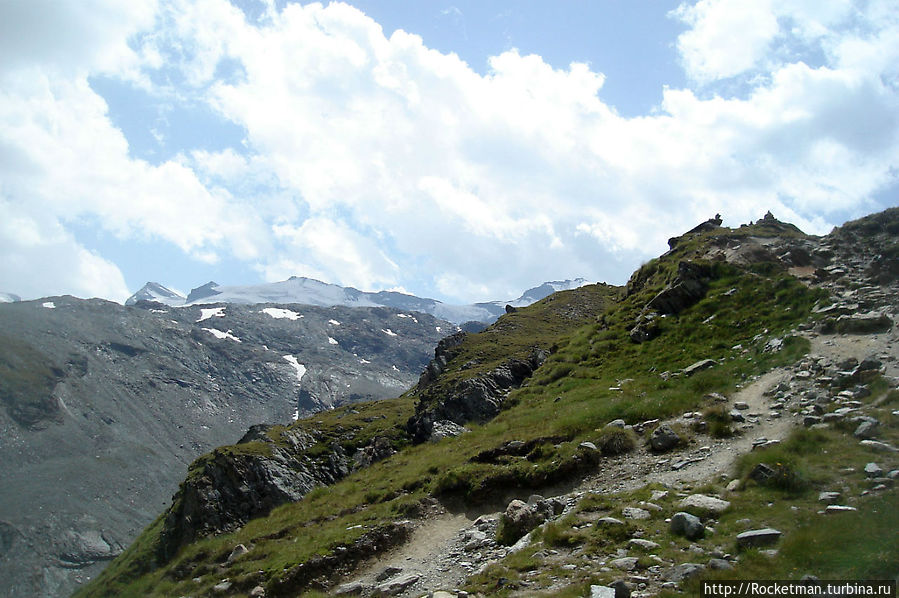 Глава 11. "На скорость тебя что ли пройти?", — подумал я, глядя на вздымающий вверх гребень Хернли. Где-то там, наверху, еще не виден, но точно есть тот самый приют Хернлихут, и то, какой оттуда обзор на массив Монте-Роза, я еще себе не мог представить.