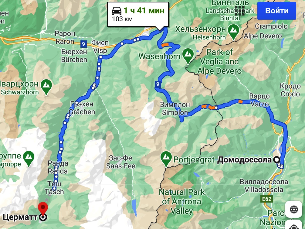Мой путь в Церматт начинался из итальянского города Домодоссола. Сразу после выезда из Домодоссолы дорога пошла вверх к Симплонскому перевалу и далее по дороге №9 до города Фисп.