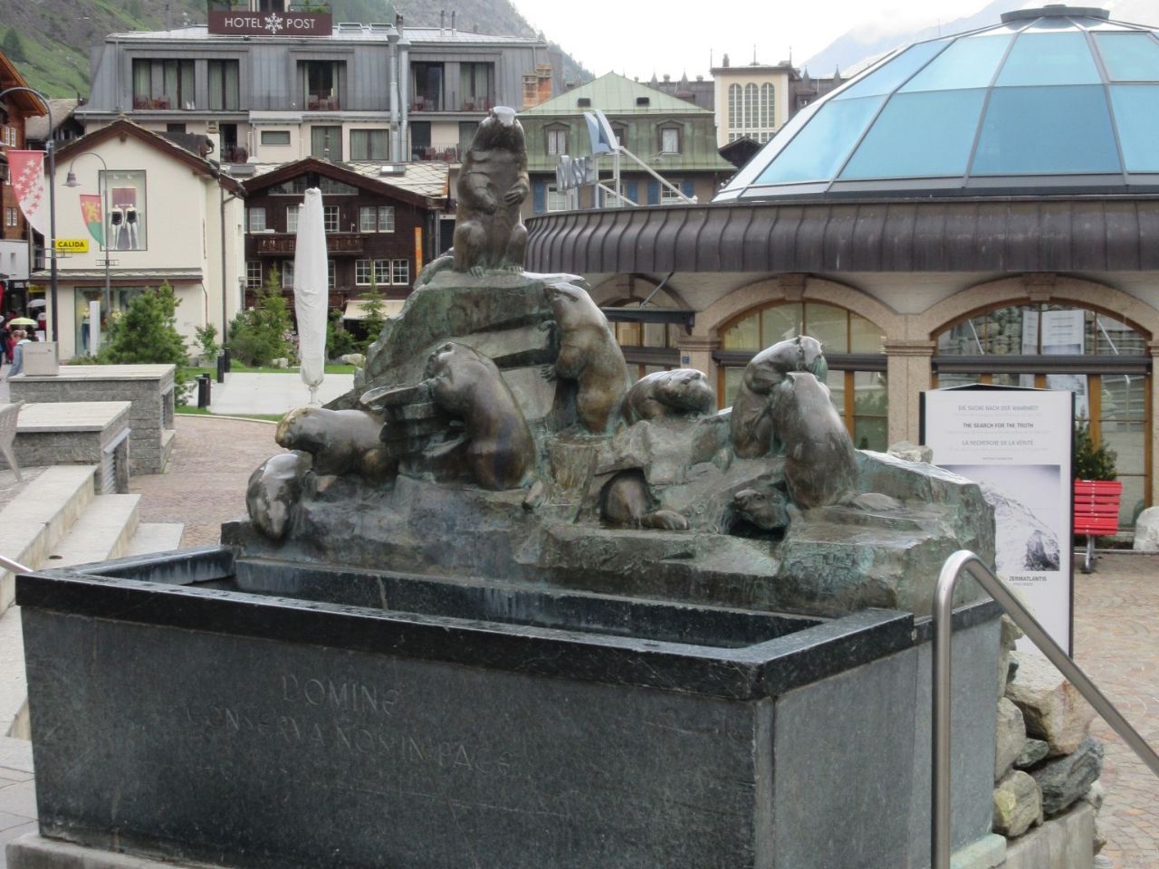 Надпись на чаше фонтана по-латыни: Domine conserva nos in paсe – Господи, храни нас в мире! Или это сурки обратились с призывом, или козлик? Но я тоже присоединяюсь.