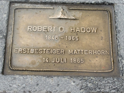 На одной из улиц в тротуар вмонтированы латунные плиты с именами первых покорителей Маттерхорна, погибших при спуске с вершины.