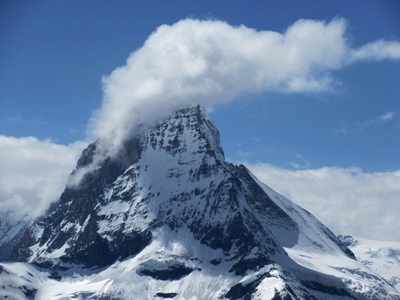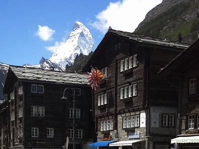 Трудно не согласиться с этими утверждениями рекламного буклета, но не перечисленными «рекордами» привлек меня этот знаменитый курорт. Мои горнолыжные поездки остались в далеком советском прошлом, а сегодня, заключая договор страхования путешествия, в графе «занятие горнолыжным спортом» я ставлю прочерк. «Две страны» — этим сегодня никого не удивишь, у меня и три было в одной дневной поездке. Ну, а гурманом я никогда и не был. А заманил меня этот горнолыжный курорт окружающими альпийскими пейзажами и нависающим над Церматтом «пугающим» пиком со звучным именем Маттерхорн.