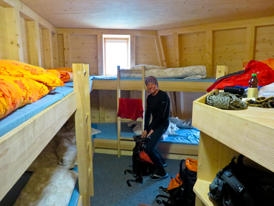 Но до хижины мы дошли. Разместится с ужином и завтраком стоит 85 франков. Очень крутое современное строение на высоте 2800м.