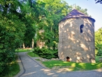 Сейчас там городской парк с дорожками и смотровыми площадками с великолепными видами на Чески Тешин. А когда-то был средневековый замок. Собственно, от замка мало что сохранилось, XIII век, все-таки. Можно увидеть ворота, одну сохранившуюся смотровую башню, именуемую Пястовской и еще несколько фундаметов сооружений.