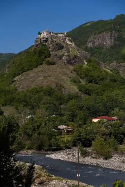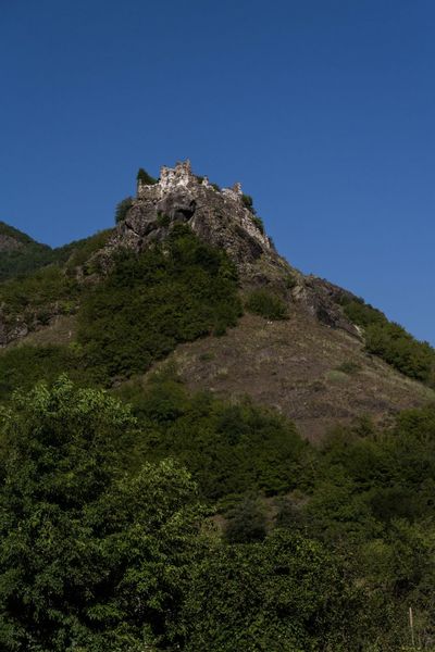 Крепость в очень плохом состоянии – на её стенах появились глубокие трещины, в каких-то местах камни достаточно просто расшатать рукой, и они выпадут из, когда-то крепких и надёжных стен. И снова мне повезло – мне встретился проводник. Я благодарила его, а он благодарил меня)) Потому что он, оказывается, уже давно обещал своим детям сводить их к крепости, но….. обещание долгое время так и оставалось только обещанием. И тут появляюсь я с желанием подняться к крепости. Так мы дружным отрядом и поползли к Миндацихе!