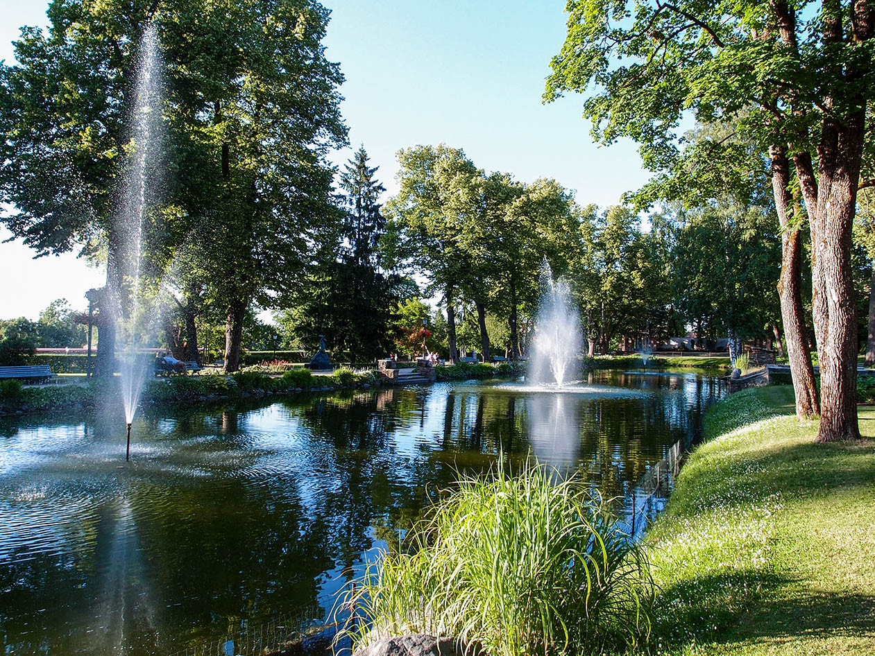 Бой с кентавром. Автор Карлис ЯнсонсПарк очарователен. Нарочито «дикие» цветочные островки и пышные клумбы, современные и более старинные скульптуры скульптуры — всё здесь находится в гармонии и содержится в порядке.