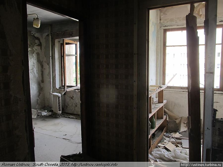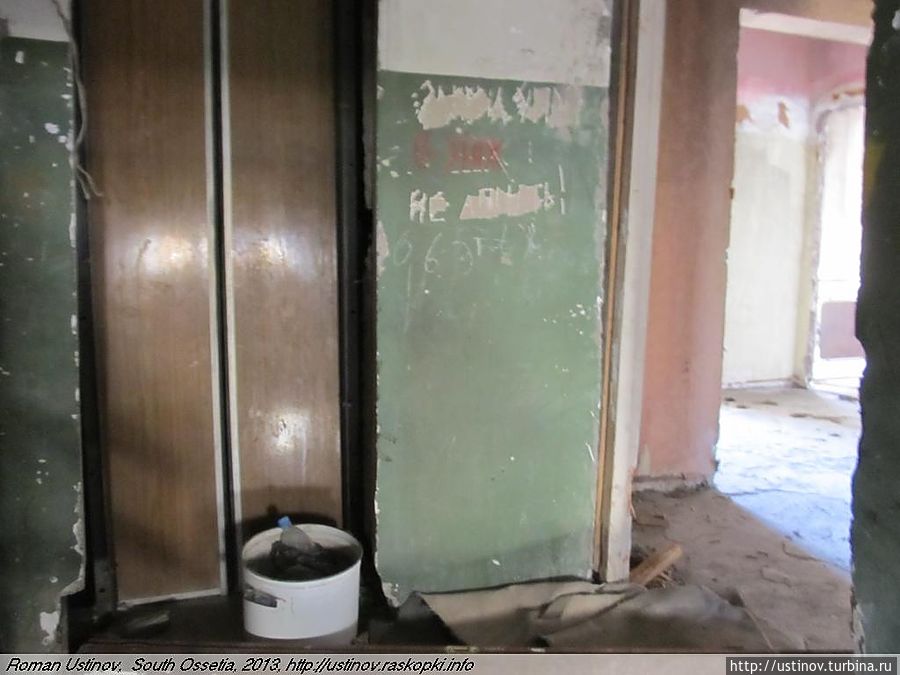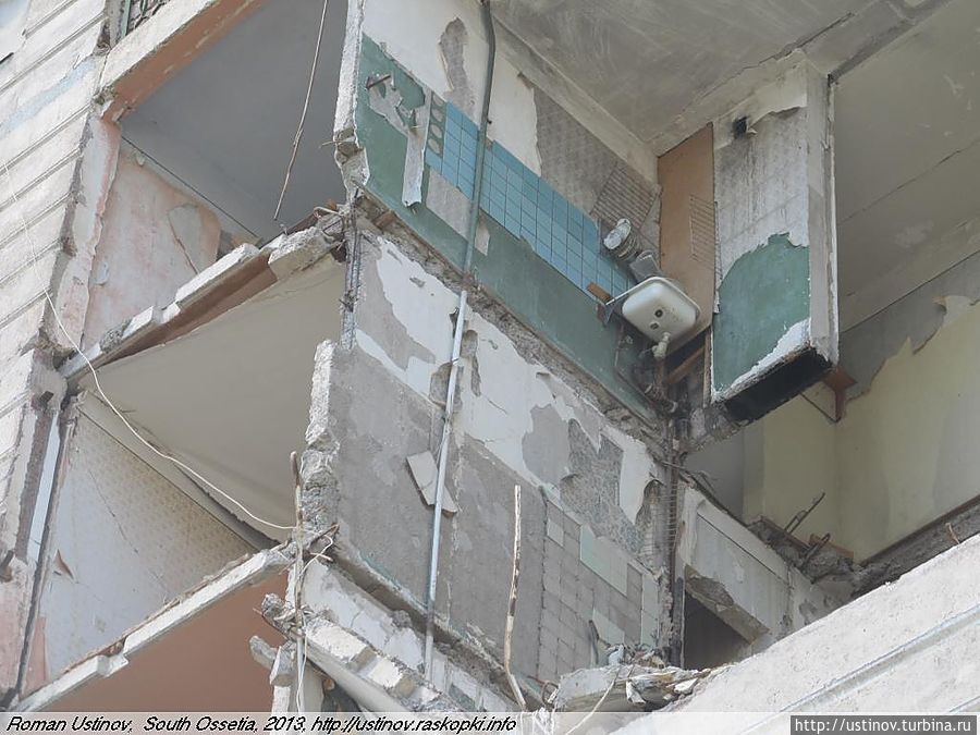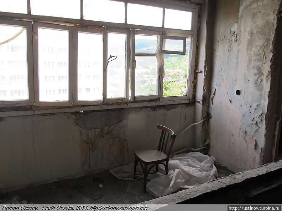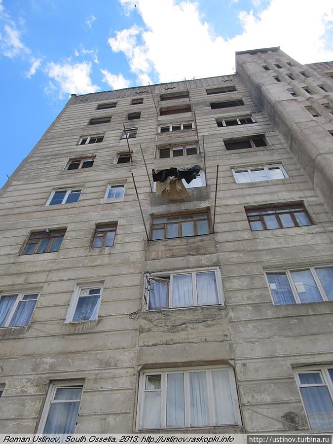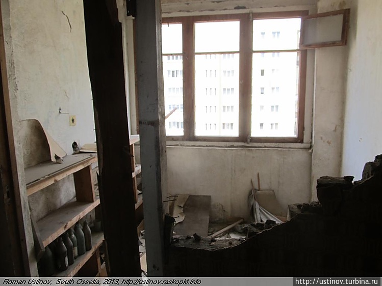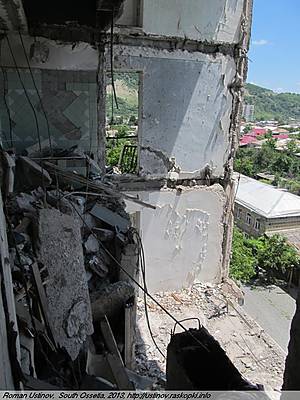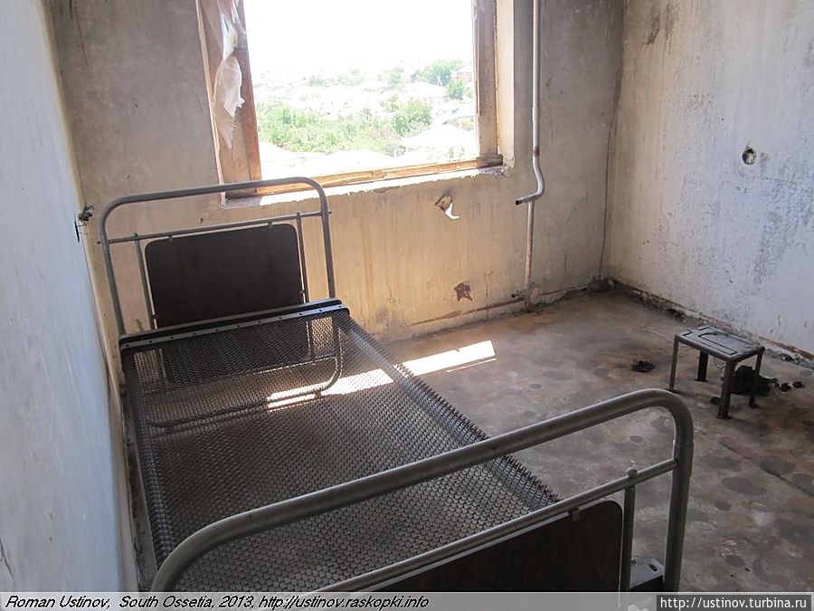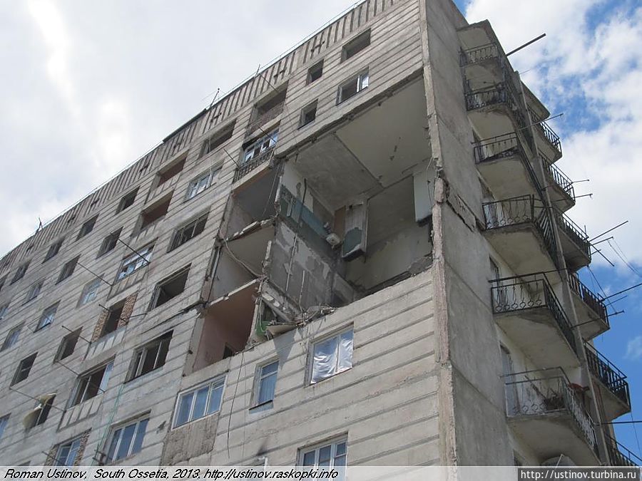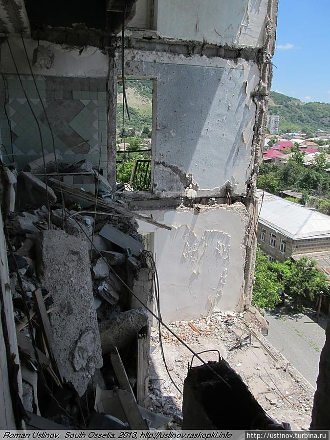 Находится на отшибе, обстрелян, как и многие дома в городе Цхинвале.