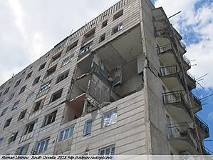 Интересен этот дом, в первую очередь, тем, что именно с его бомбежки началась эта злополучная война. Т.е. он пострадал самым первым (со слов жителей дома).