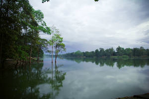 Итак, покатавшись на разнообразных транспортных средствах, мы добрались до Сием Рипа и, не теряя времени, отправились на осмотр Ангкор Вата. Вход на территорию национального парка стоит 20$ и, само собой, желания отдавать их ни у одного из нас не было, поэтому решено было проникнуть без билета. Для этого мы решили просто обойти КПП через джунгли. Войдя в джунгли по тропинке и пройдя от неё в необходимом направлении минут 10 нас застал врасплох тропический ливень! Хорошо что мы успели растянуть тент от палатки между деревьями, где пережидали ливень в течении получаса. Как и водится в этих местах, он закончился так же резко как и начался и, через 20 минут, пробираясь сквозь колючки и, искусанные рыжими муравьями, мы наконец-таки выбрались на дорогу!