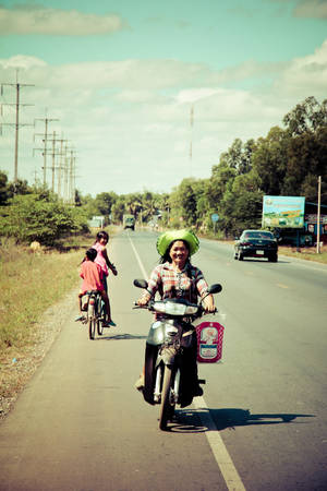 Итак от автовокзала решено было поехать автостопом. Не зная как тут обстоит дело с подобного рода передвижением, было решено разделиться. Кирилл уехал чуть раньше нас на мопеде, но зато мы с Русланом поймали тойоту и догнали Кирилла в г. Сисафоне. Ну а дальше на чём мы только не ехали по пути к Сием Рипу, где планировали задержаться на осмотр древнего города Ангкор Вата. Транспортные средства варьировались от тракторов с телегами до грузовиков. Удобнее, комфортнее и на мой взгляд наиболее захватывающе было передвигаться в кузове пикапа. Во-первых я всегда мечтал покататься в кузове, когда ветер дует в лицо и приятно греет солнце, а во-вторых это довольно быстрый способ передвижения.