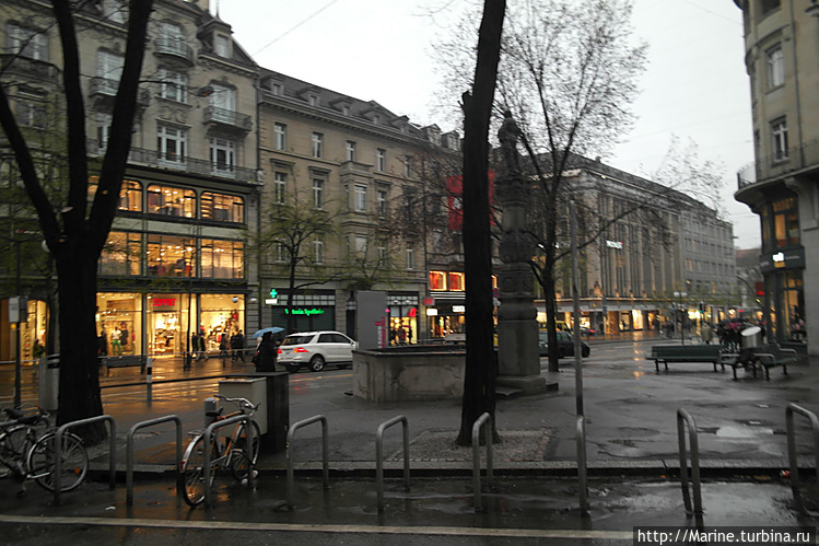 Вот так неожиданность, а вчера было жарко- 25 градусов тепла. Весь день решили провести в Цюрихе, походить по городу. Цюрих встретил нас моросящим дождем и выглядел серо и уныло.
