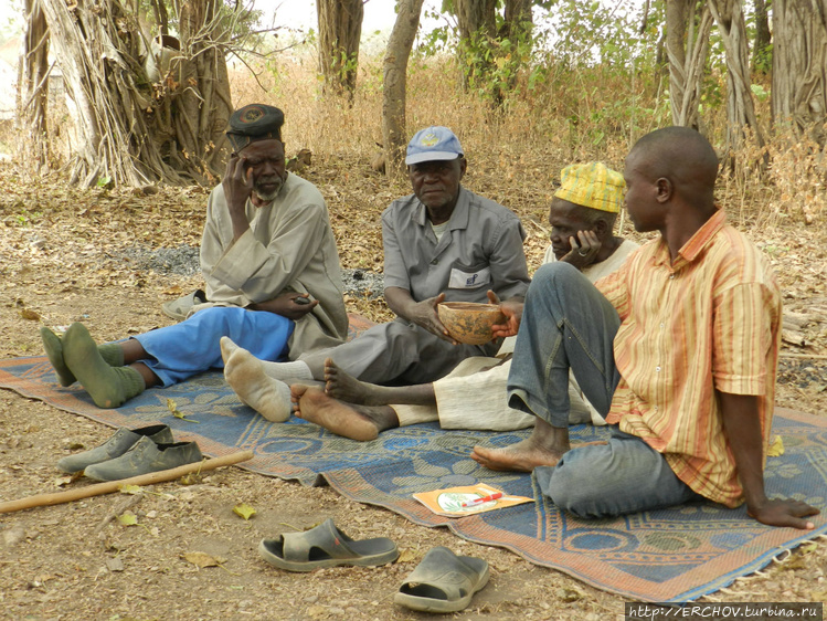 К тому времени поспело пиво, собралось на лужайке все племя, мужик представил наше стадо своему народу, по традиции расспросил каждого из нас, чем занимается, что думает про Африку и зачем приперся к ним, рассказал стандартную легенду о том, что они могли бы жить, как белые пришельцы, но в отличие от нас слишком чтят предков и их традиции, поэтому и ушли в горы. Сопровождались рассказы передачей калабасы с пивом по кругу, в круг включили и нас. Памятуя, что воду брали неизвестно откуда, отхлебнул мало, но напиток оказался приятным, что-то вроде кваса с пивом:)
