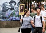 Бессмертный полк начал сворачивать в центральный парк. Погода была великолепной.
