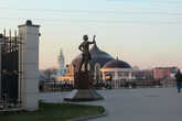 Если кто-то не знает или запамятовал, напомню, что Левша — герой произведения Лескова "Сказ о тульском косом Левше и о стальной блохе". И у этого героя был реальный прототип — мастер Тульского оружейного завода Алексей Сурнин, который работал левой рукой. Этот памятник — своего рода один из символов города, и, как мне кажется, такой памятник должен был быть установлен уже давно, ведь Тула — город оружейного мастерства. Однако памятник появился на этом месте совсем недавно, только в 2009 году.