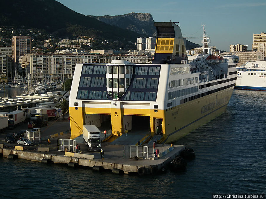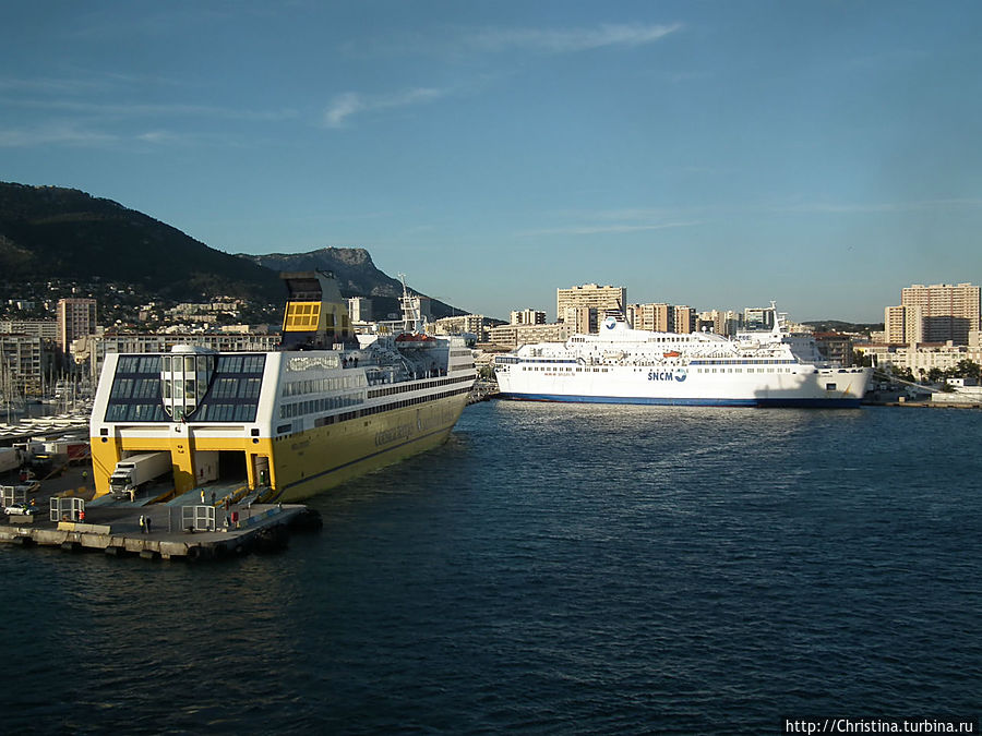 Покидая Корсику), мы провели весь день на пароме, и ближе к вечеру нам предстояло пристать к лазурному берегу Франции, в порту прибрежнего Тулона.