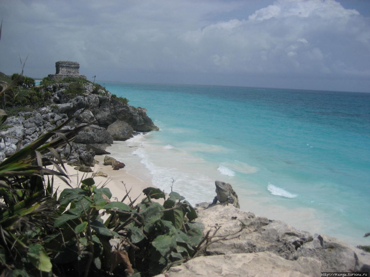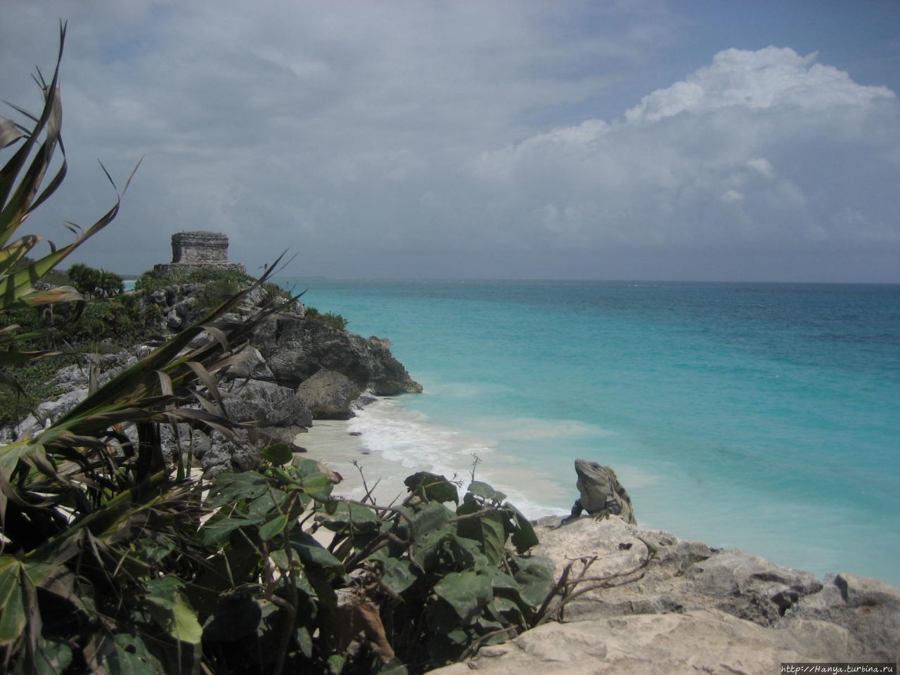 Храм Бога Ветра в Тулуме является одним из самых фотографируемых зданий в Тулуме из-за его расположения рядом с голубым бирюзовым морем, и я подтверждаю это на все 100%! Отсюда сложно уйти, потому что хочется делать массу фото с собой и без, особенно когда в кадр попадает бесстрашная игуана.