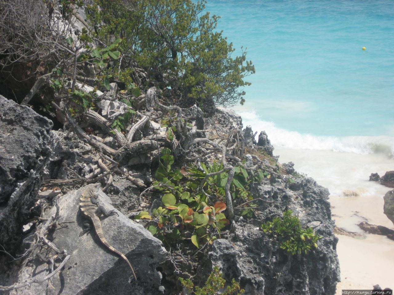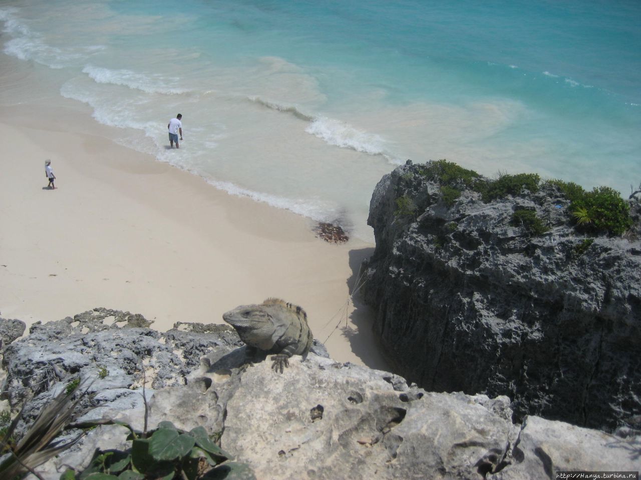 Тулум. Эль Кастильо – замок, Храм или Маяк? Ч.157) понимаем, как удачно был расположен город. Окруженный каменными стенами с суши, он заканчивается высокими (15 м) скалами. Стоя на краю отвесного утеса, на этом вытоптанном многочисленными туристами пятачке, ждем своей очереди для фотографирования. Вид вниз на пенистые волны и на Кастильо восхитителен!