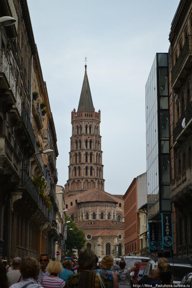 А вдали уже показалась базилика святого Сатурнина её ещё называют Сен-Сернин , это сокращённое название от "Святой Сатурнин"