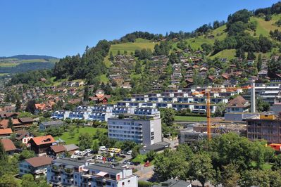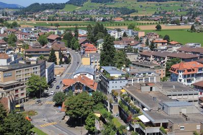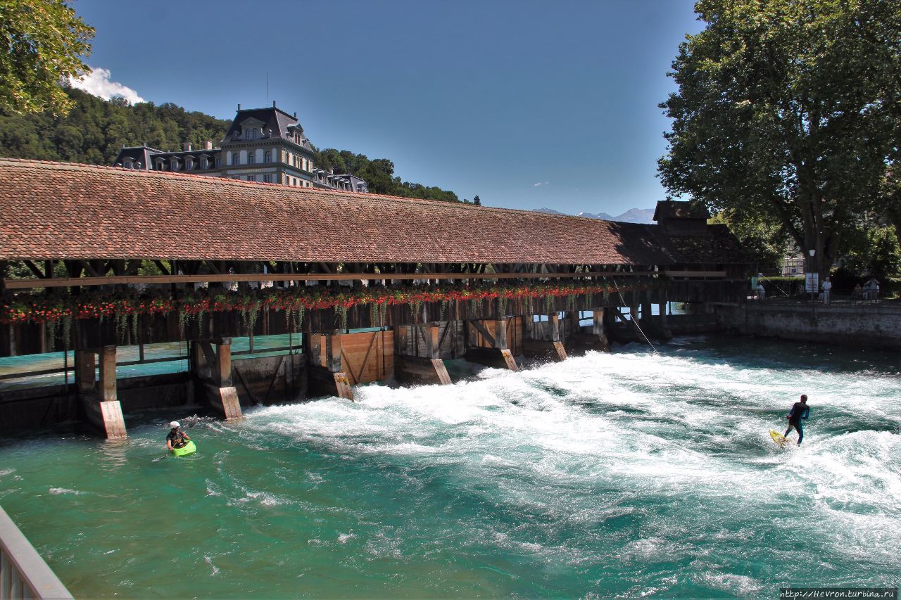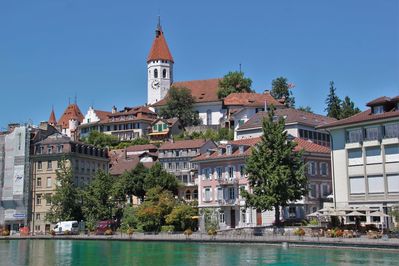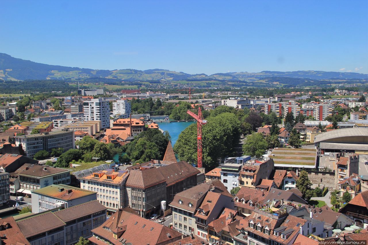 Этот городок располагается на одноименном озере, а так же его пересекают бирюзовые воды реки Ааре. Город не маленький по меркам Швейцарии, тут проживает порядка 90 тыс человек.