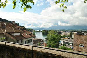 С высоты Замковой горы открывается прекрасная панорама на приозерную часть города и Ааре. А счастливчики, попавшие сюда в безоблачный день, увидят завораживающую панораму Бернского Оберланда. Увы! В то утро горы спрятались от меня за плотной массой облаков на горизонте.