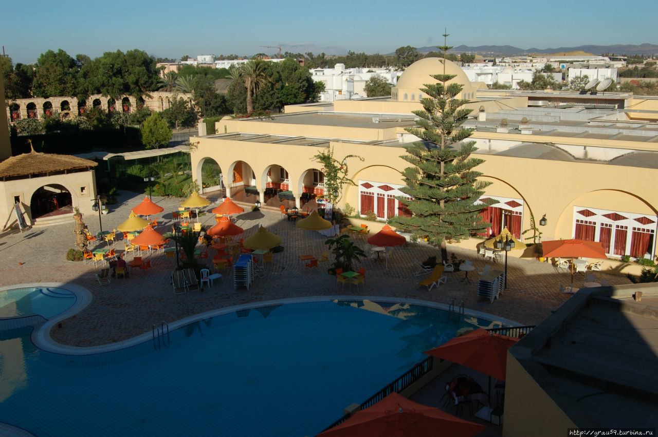 По вине саратовского турагентства ни саму путёвку в Тунис, ни медицинскую страховку мы не получили. Прямо в Москве в аэропорту получите у туроператора "Норд". В аэропорту представитель туроператора сделал большие глаза и объяснил ,что мол все документы должны были выдать в Саратове. Дело было в воскресенье, найти никого ни он, ни мы не смогли. Но согласно его заверениям после прилёта в Тунис нам страховку медицинскую привезут в отель. Благо билеты электронные , не обязательно наличие бумажного соответствия и мы с тяжелой душой отправились в Тунис. Устроились с приключениями , более-менее номер попался. Правда окнами выходил на задворки, зато сушить можно было купальники и полотенца без особого страха.