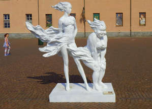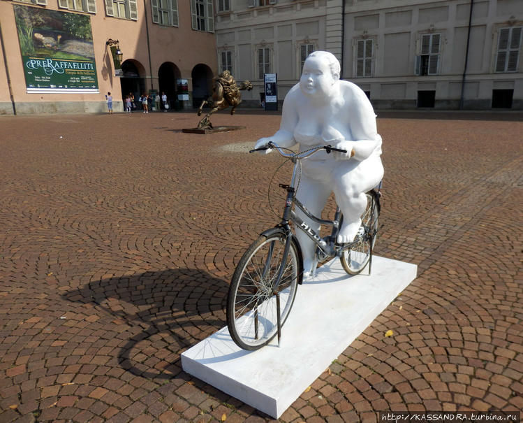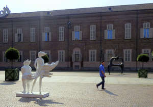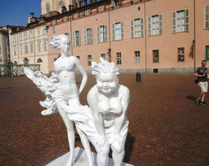 С обеих сторон не слишком роскошного королевского палаццо построены два павильона. В этом замкнутом пространстве проходила выставка скульптура Сюй Хун Фэй «Очарование древней столицы». Этот китайский автор, ректор Академии скульптуры в Гуанчжоу, известен своими скульптурами женщин, не знающих слова «диета». Необычные произведения в центре Турина иллюстрируют «радости жизни». Позитивные персонажи выставки на Дворцовой площади появились благодаря мэру Турина, лично пригласившего Сюй Хун Фэй.