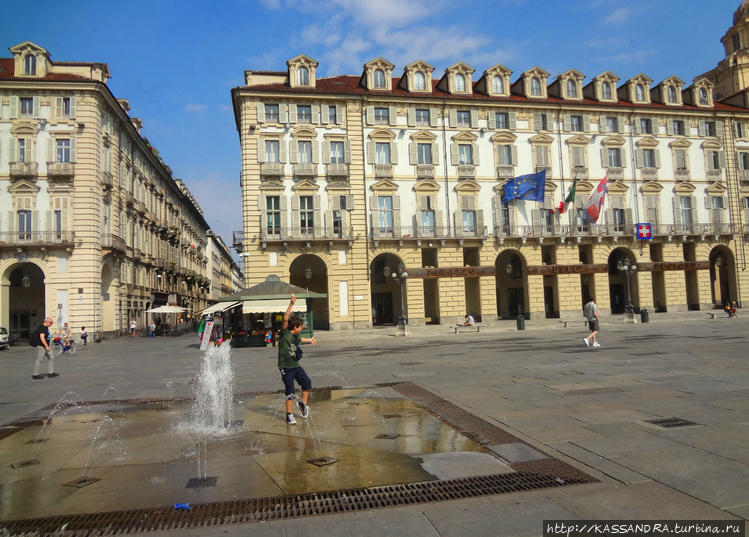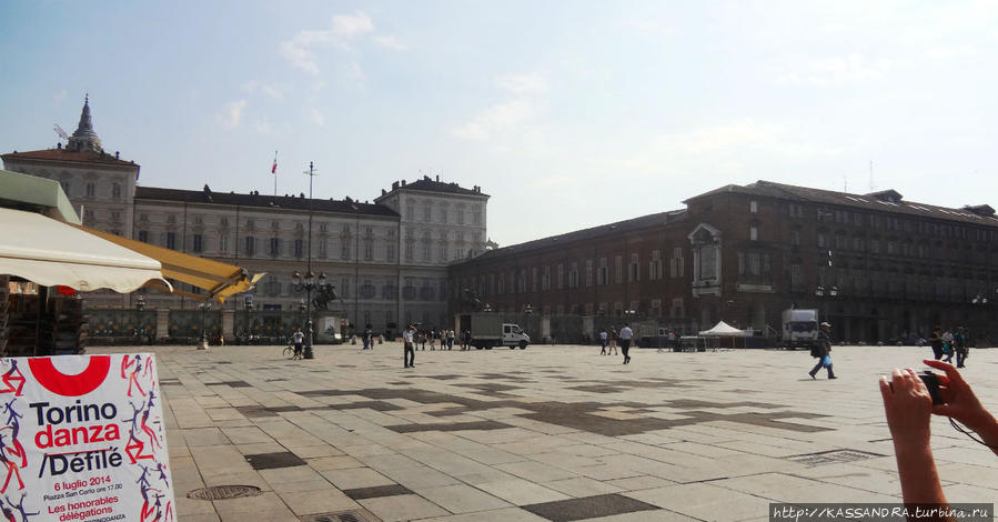 В Турине у нас было совсем мало времени — чуть больше суток. Сразу после завтрака пешочком мы пошли в центр города. Очень скоро мы вышли на площадь Кастелло и, конечно, увидели Королевский дворец.