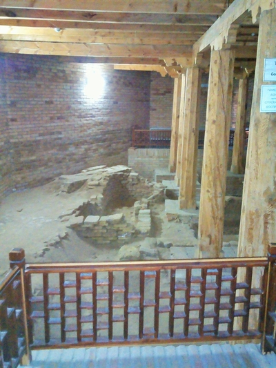 То, что раскопали, закрыто навесом, спускаться к раскопкам не разрешают, по крайней мере, в момент моего посещения, действовали такие правила.