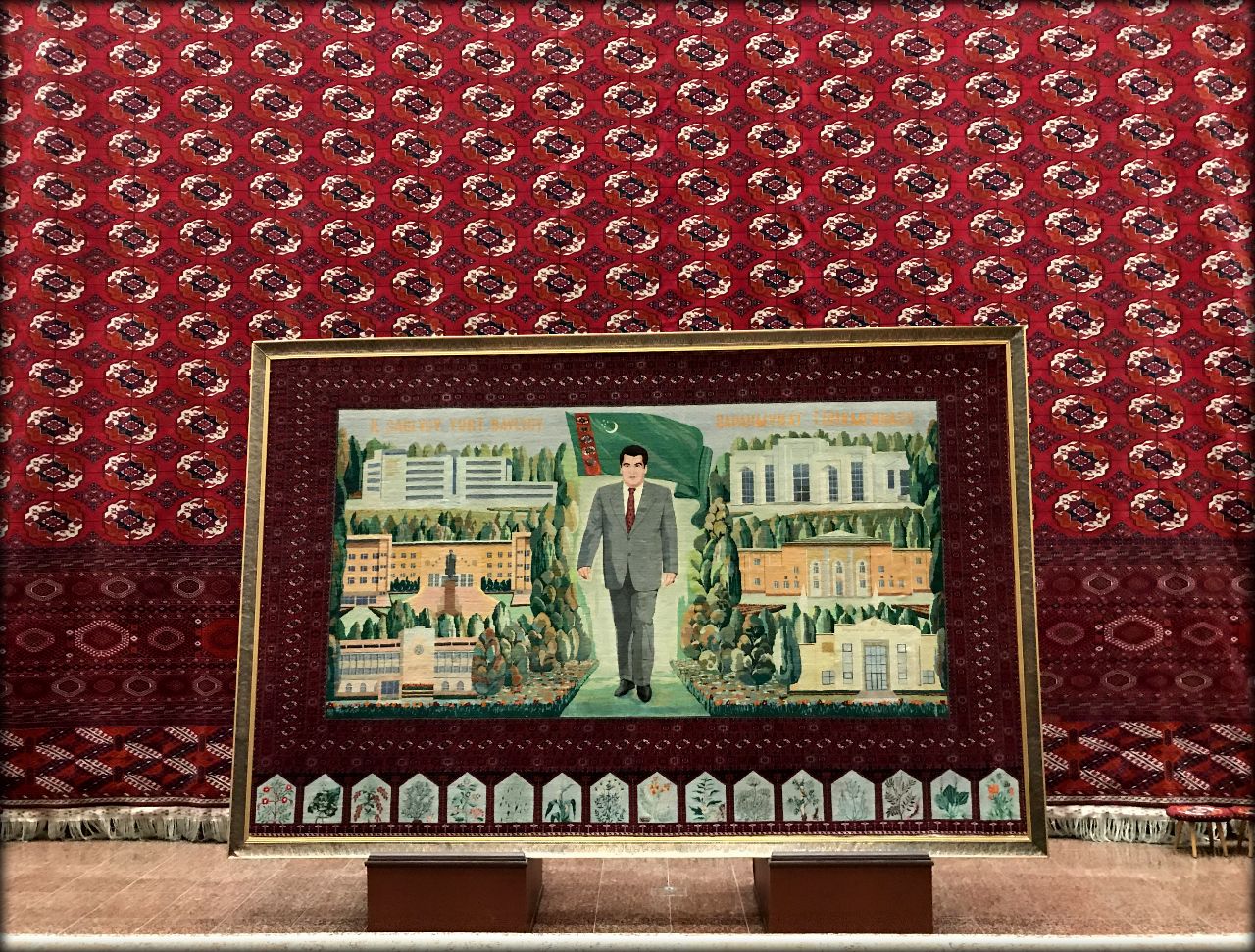 На заднем плане — фрагмент гигантского ковра "Туркменбаши". Его площадь 266 квадратных метров, количество узелков — 16,4 миллиона, вес — 1 тонна. Короче музей хороший, покажу вам его в отдельной заметке.