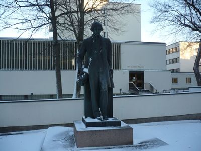 Сделав круг по кварталу, остановились у памятника Йосефу Юлиусу Векселлю, посвященному финскому поэту и драматургу.