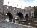 Путать Пон-де-Труа с Па-де-Труа никак не следует: последнее балетный номер, а первое — знаменитый мост через Шельду. Создание этого укреплённого пункта относится примерно к XIII веку, когда Турнэ окружало плотное кольцо мощных укреплений. Как известно, одним из самых уязвимых мест обороны является река, проходящая через город (именно так Вавилон был захвачен царём Киром), и вот чтобы лишить неприятеля возможности воспользоваться этим путём, было возведено подобное сооружение.
