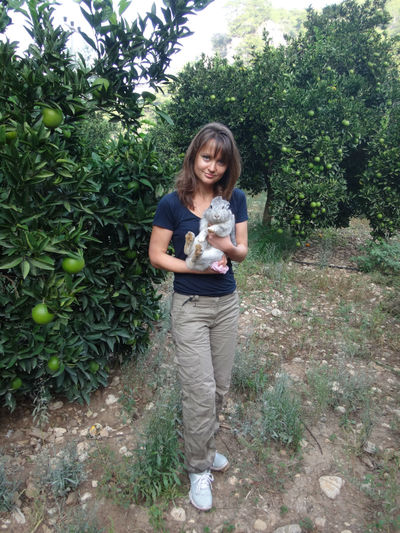 По пути зашли в один из садов, увидели милых кроликов пасущихся там.