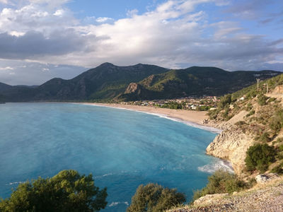 Доехали до Фетхие попрощавшись с водителем. Пошли перешком, увидели деревенскую свадьбу, которая не произвела на нас впечатления, во время дождя укрылись на веранде одного из домов, где весело провели время с радушной хозяйкой Мигрош и ее подругой, распивая Чай и кофе с угощениями, когда погода наладилась мы остановили машину в сторону Олюдениза. Нас привезли прямо на набережную. Пляж и море невероятной красоты, купаться одно удовольствие. в город, такой типично туристический нам даже не хотелось заходить. Что мы и не сделали встретив семью на побережье, глава которой уговорил нас пожить на его новой вилле с бассейном в поселке Каякей, мы согласились и прожили там 2 дня. Поселок окружен горами, в нем есть опять же таинственные развалины древнего города оставленного греками находящемся неудобно на крутом холме.