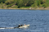 С Борисоглебского берега отлично видны прибрежные храмы Романовской стороны.