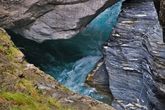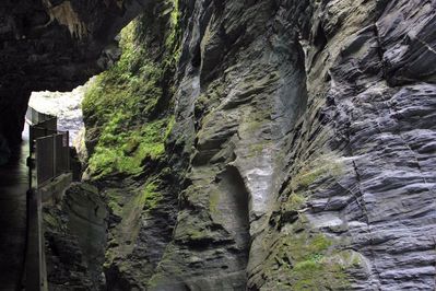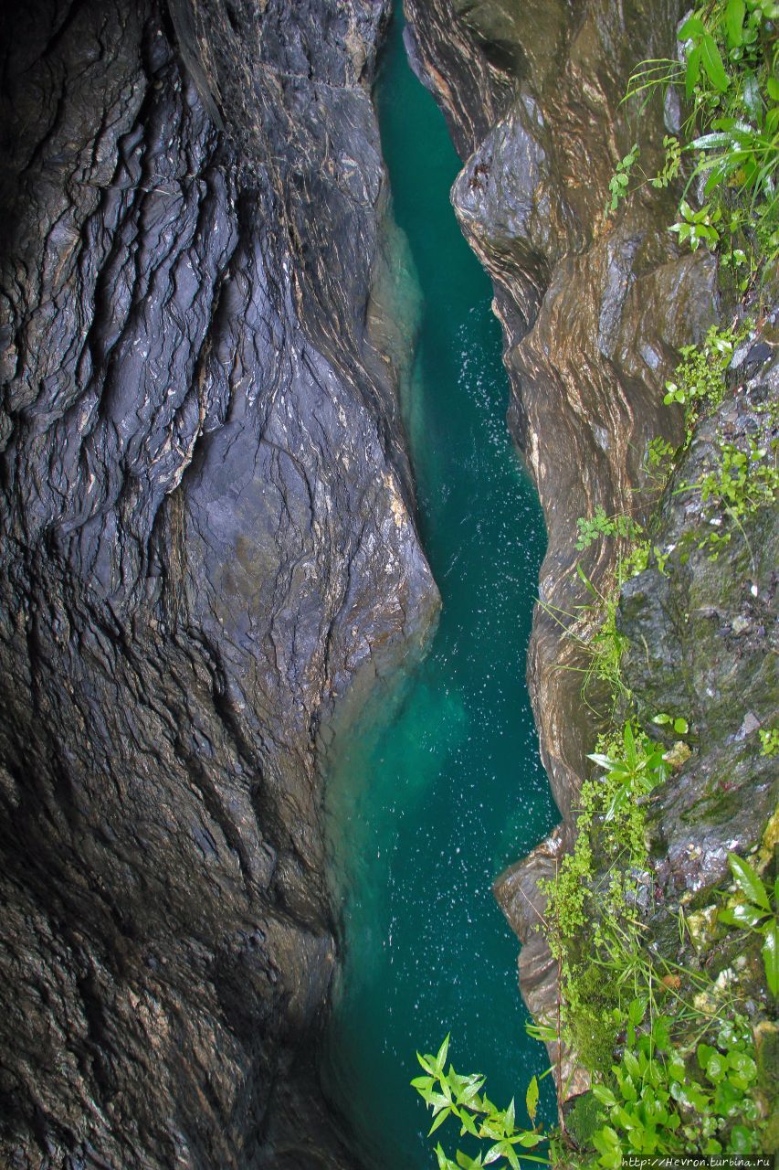 Этот впечатляющий памятник природы с трехсотметровыми каменными стенами, настолько крут и порой настолько узок, что захватывает дух. Необычные черные камни с белыми вкраплениями, через которые протекает бирюзового цвета вода останутся в памяти навсегда. Дикая, необузданная естественная красота.